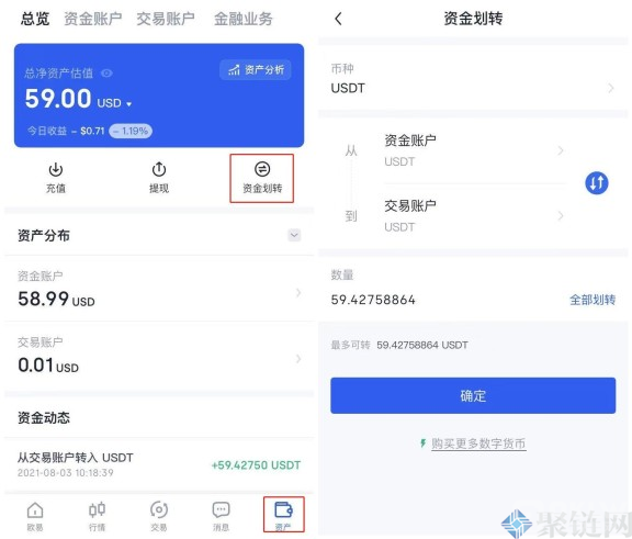 1、首先将我们的数字资产从资金账户划转到交易账户,如已完成则无须进行额外划转操作。