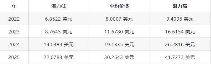 一个加密货币预测网站修改了其 FIL 价格预测。该公司预计,到 2022 年底,收盘价最高为 8.11 美元。也就是说,2022 年的最低和平均收盘目标分别为 7.18美元和7.77 美元。根据 Digital Coin Price 预测,到 2025 年底,FIL 最高可达25.08 美元。