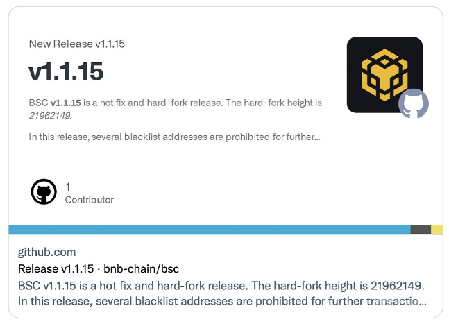 BNBChain:已发布BSCv1.1.15版本,计划1小时内重启网络
