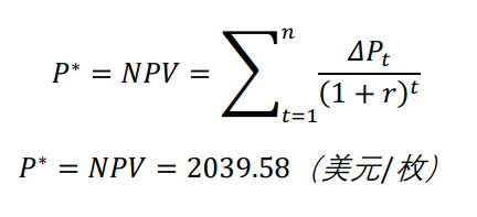使⽤ 10% 的贴现率,将每年价值增量 ΔPt 折现,得到所有未来货币增值的现值总和:
